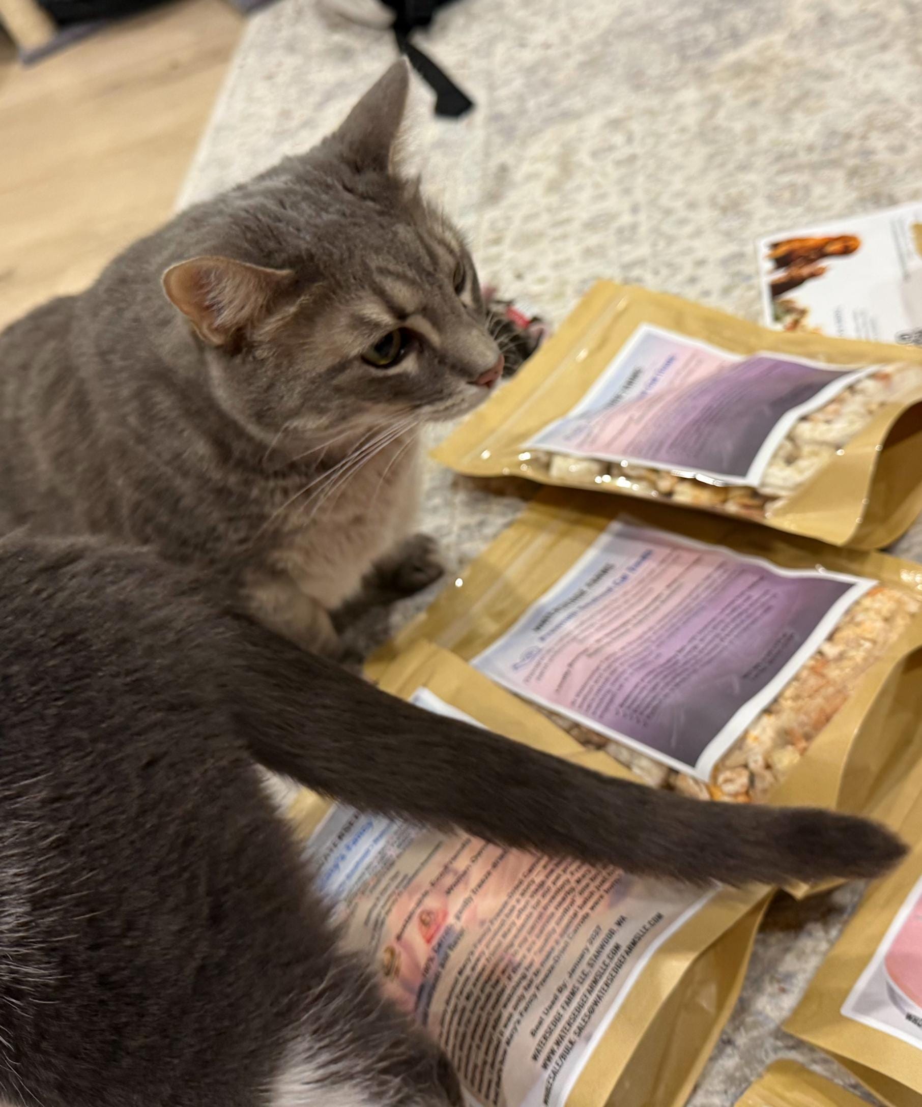 At Watersedge Farms, we thoughtfully combine hand-picked, high-quality seafood and ingredients to create wholesome treats that support your cat’s natural diet and instincts. Each seafood treat encourages healthy snacking, mental stimulation, and overall well-being—because a happy, engaged cat is a healthy cat.