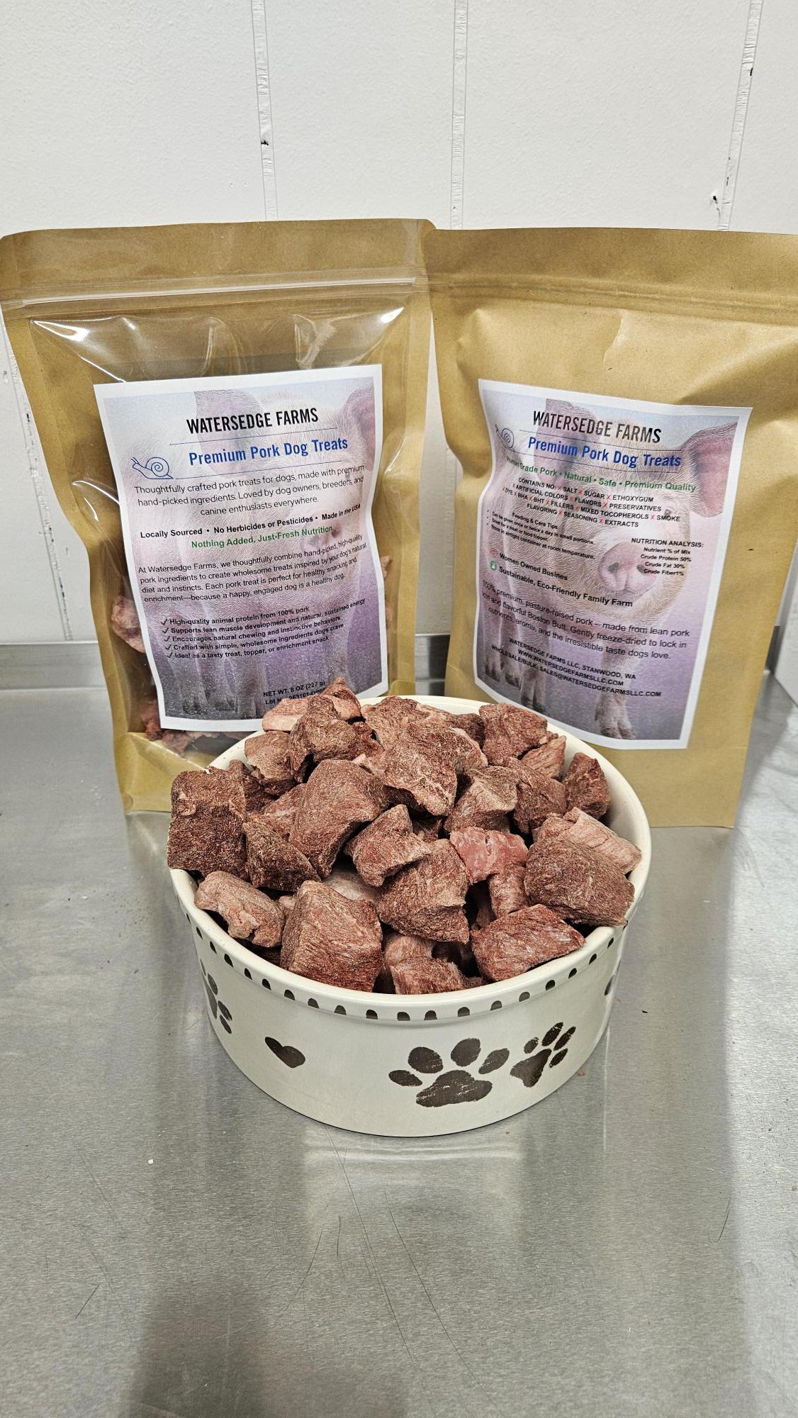Thoughtfully crafted pork treats for dogs, made with premium,