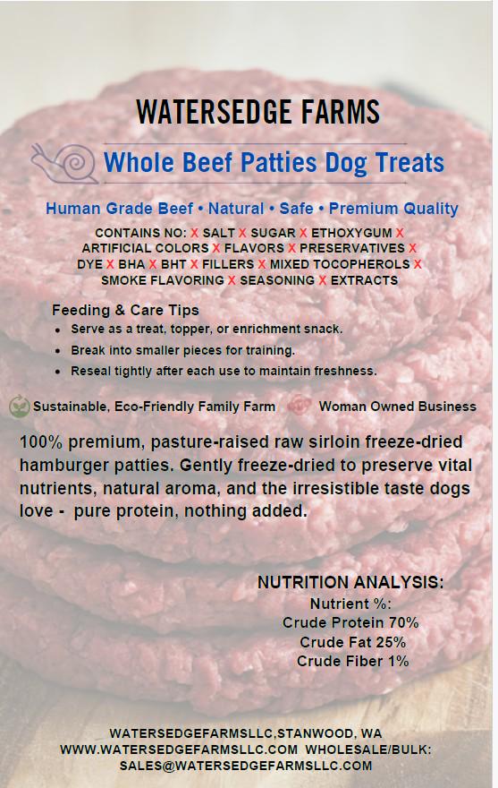 At Watersedge Farms, we thoughtfully combine hand-picked, high-quality beef ingredients to create wholesome treats inspired by your dog’s natural diet and instincts. Each beef treat is perfect for healthy snacking and enrichment—because a happy, engaged dog is a healthy dog.