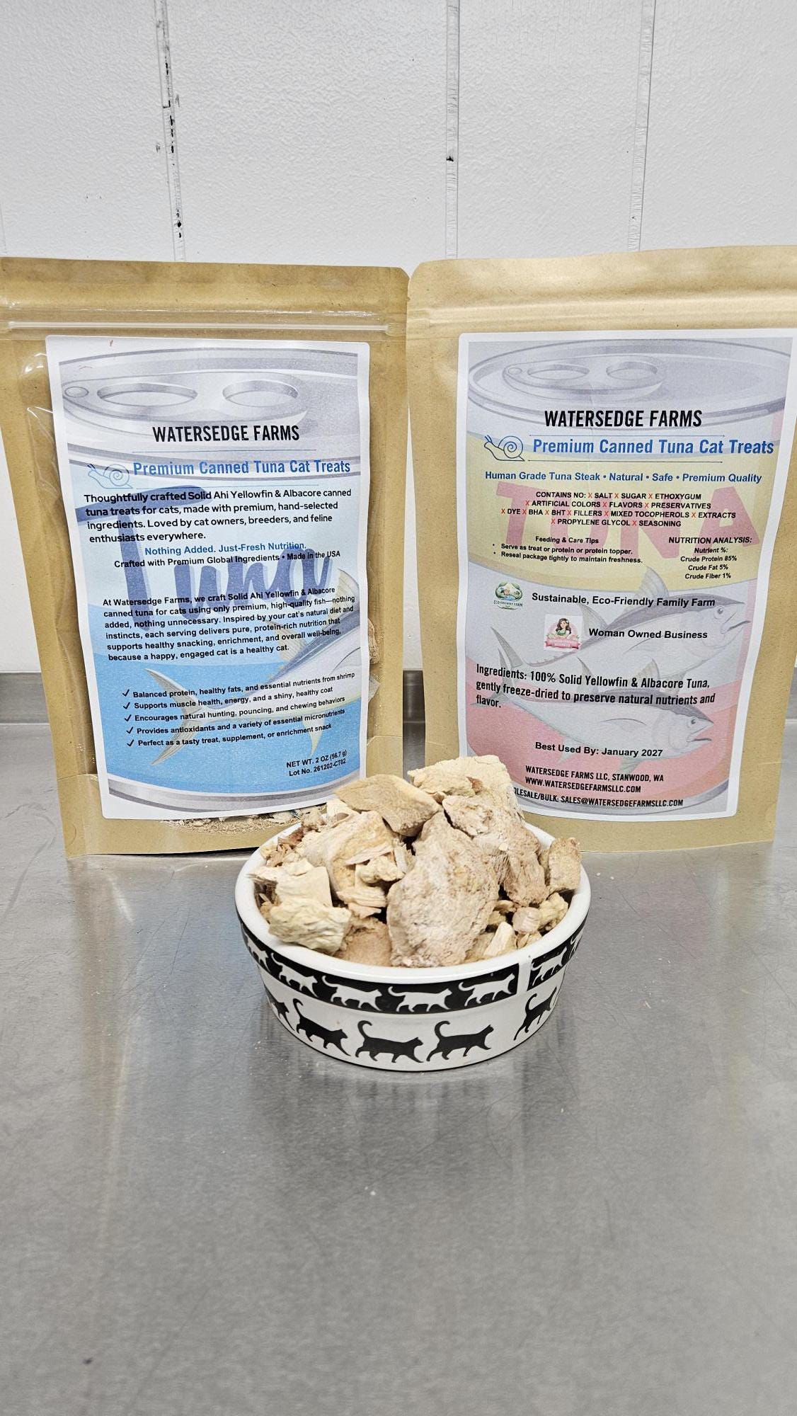 Thoughtfully crafted freeze-dried canned Solid Yellowfin and Albacore Tuna treats for cats, made with premium, hand-picked ingredients. Loved by cat owners, breeders, and feline enthusiasts everywhere.