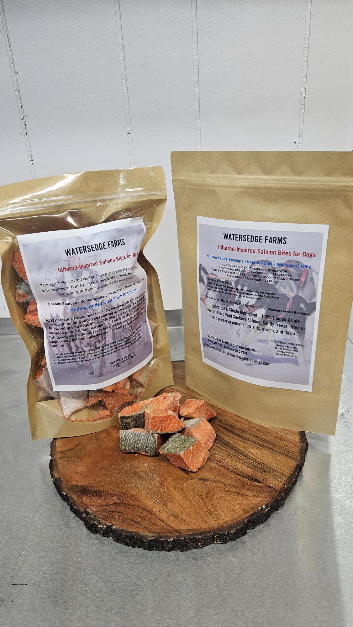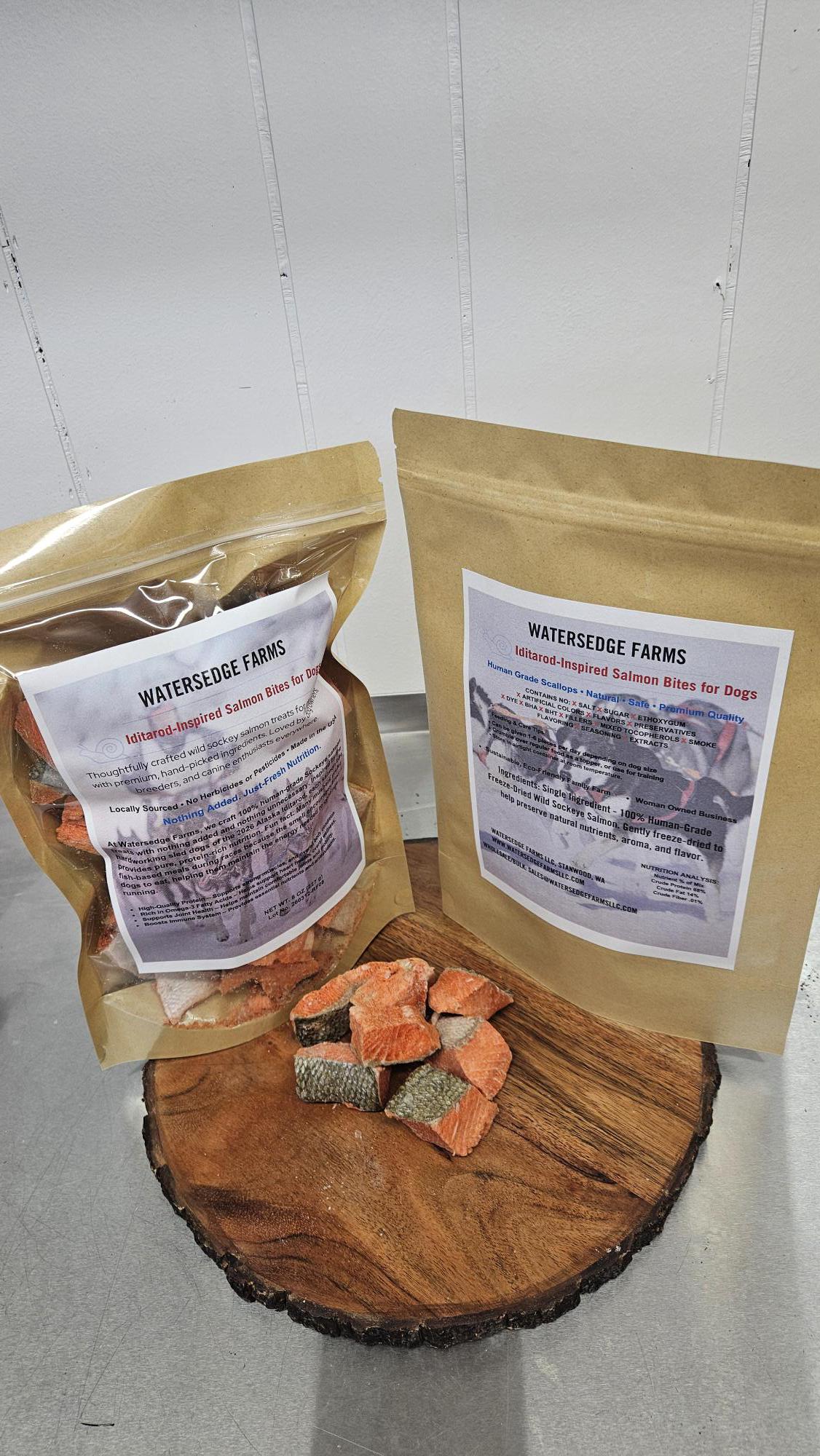 At Watersedge Farms, we craft 100% human-grade Sockeye salmon treats with nothing added and nothing unnecessary. Inspired by the hardworking sled dogs of the 2026 Alaska Iditarod, each salmon bite provides pure, protein-rich nutrition. Fun fact: Many mushers prefer fish-based meals during races because the smell encourages tired dogs to eat, helping them maintain the energy needed to continue running.