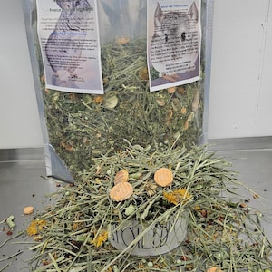✔ High-quality 2nd harvest timothy hay, leaves, and crunchy fruit ✔ Supports lean muscle, natural energy and gut movement ✔ Encourages natural foraging, and chewing behaviors ✔ Simple, wholesome ingredients chinchillas love ✔ Perfect as a supplemental treat topper or enrichment snack