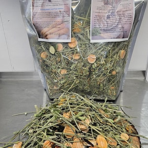✔ High-quality 2nd harvest timothy hay, leaves, and crunchy fruit ✔ Supports lean muscle, natural energy and gut movement ✔ Encourages natural foraging, and chewing behaviors ✔ Simple, wholesome ingredients rabbits love ✔ Perfect as a supplemental treat topper or enrichment snack