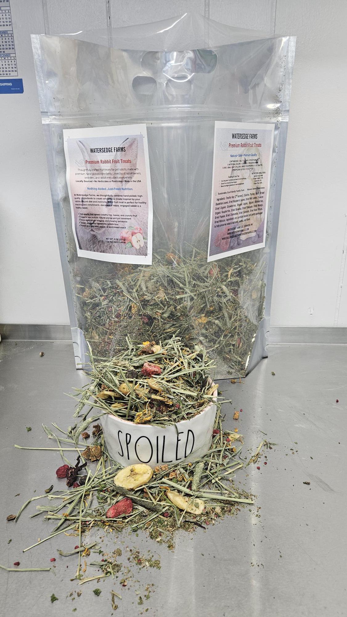 At Watersedge Farms, we thoughtfully combine hand-selected, high quality ingredients to create wholesome treats inspired by your rabbit's natural diet and instincts. Each fruit treat is perfect for healthy snacking and enrichment—because a happy, engaged rabbit is a healthy rabbit.