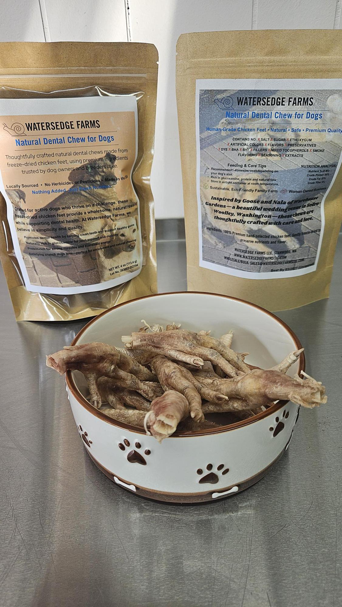 Crafted for active dogs who thrive on a challenge, these freeze-dried chicken feet provide a wholesome, natural reward while supporting dental health. At Watersedge Farms, we believe in simplicity and quality.