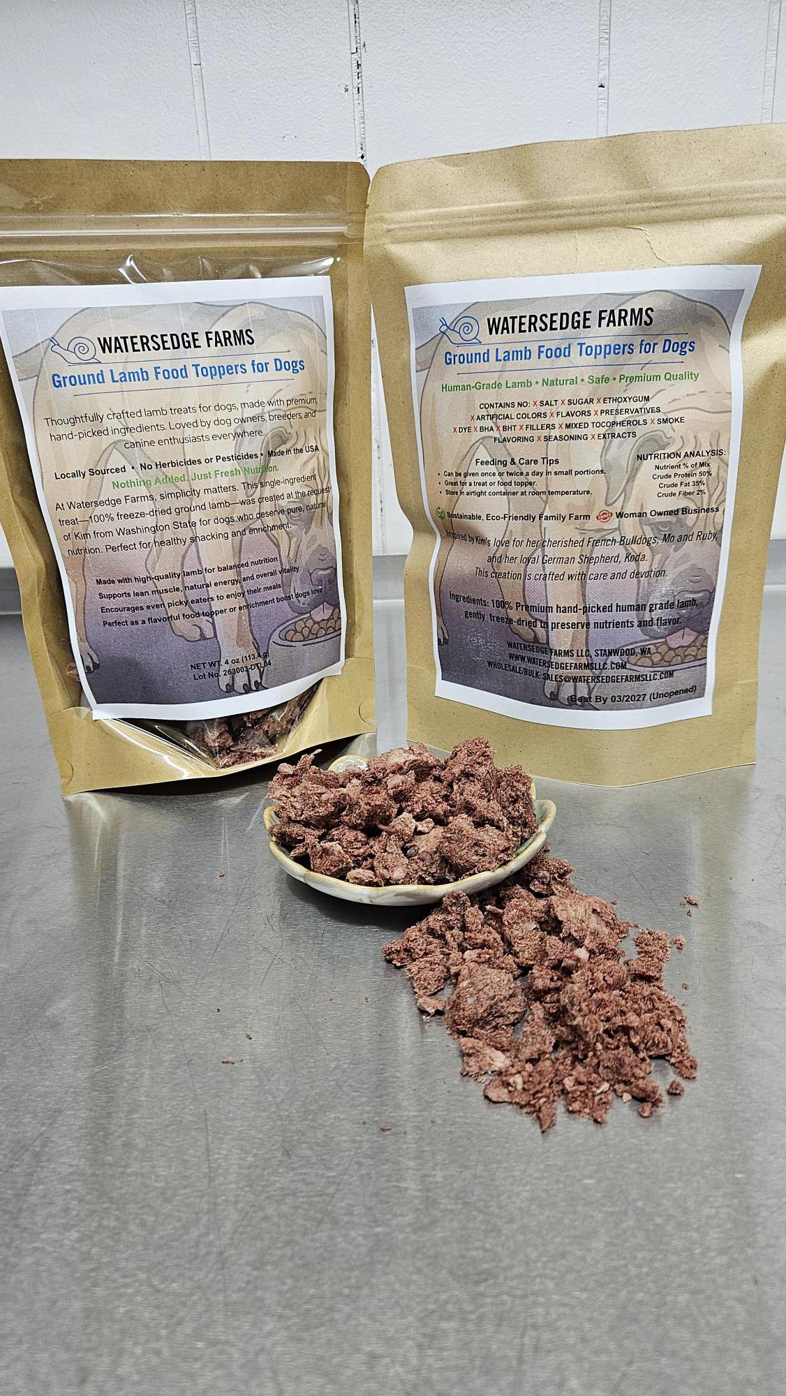 At Watersedge Farms, simplicity matters. This single-ingredient treat—100% freeze-dried ground lamb—was created at the request of Kim from Washington State for dogs who deserve pure, natural nutrition. Perfect for healthy snacking and enrichment.