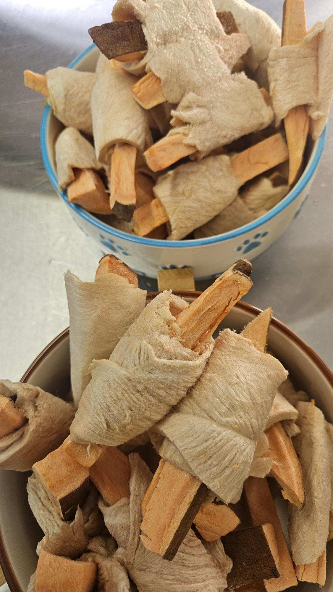 Thoughtfully crafted sweet potato treats wrapped in delicate slices of chicken breast, then gently freeze-dried to lock in natural nutrients and flavor. Made with premium ingredients and trusted by dog owners and breeders alike.
